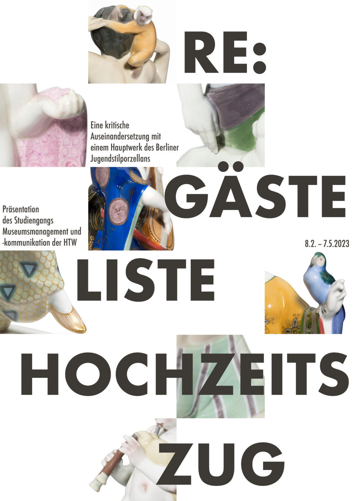 “Re: Guestlist Wedding Procession” is a critical examination of a major work of Berlin Art Nouveau porcelain and explores current questions about the decolonization of museums, with the so-called “Wedding Procession” as an example. The project focuses on the “Wedding Procession”, a multi-figure porcelain centerpiece designed by sculptor Adolf Amberg in 1904 and sculpted at the Königliche Porzellan-Manufaktur Berlin (KPM). The design is associated with the wedding of the last German Crown Prince Frederick William of Prussia and Duchess Cecilie of Mecklenburg-Schwerin.