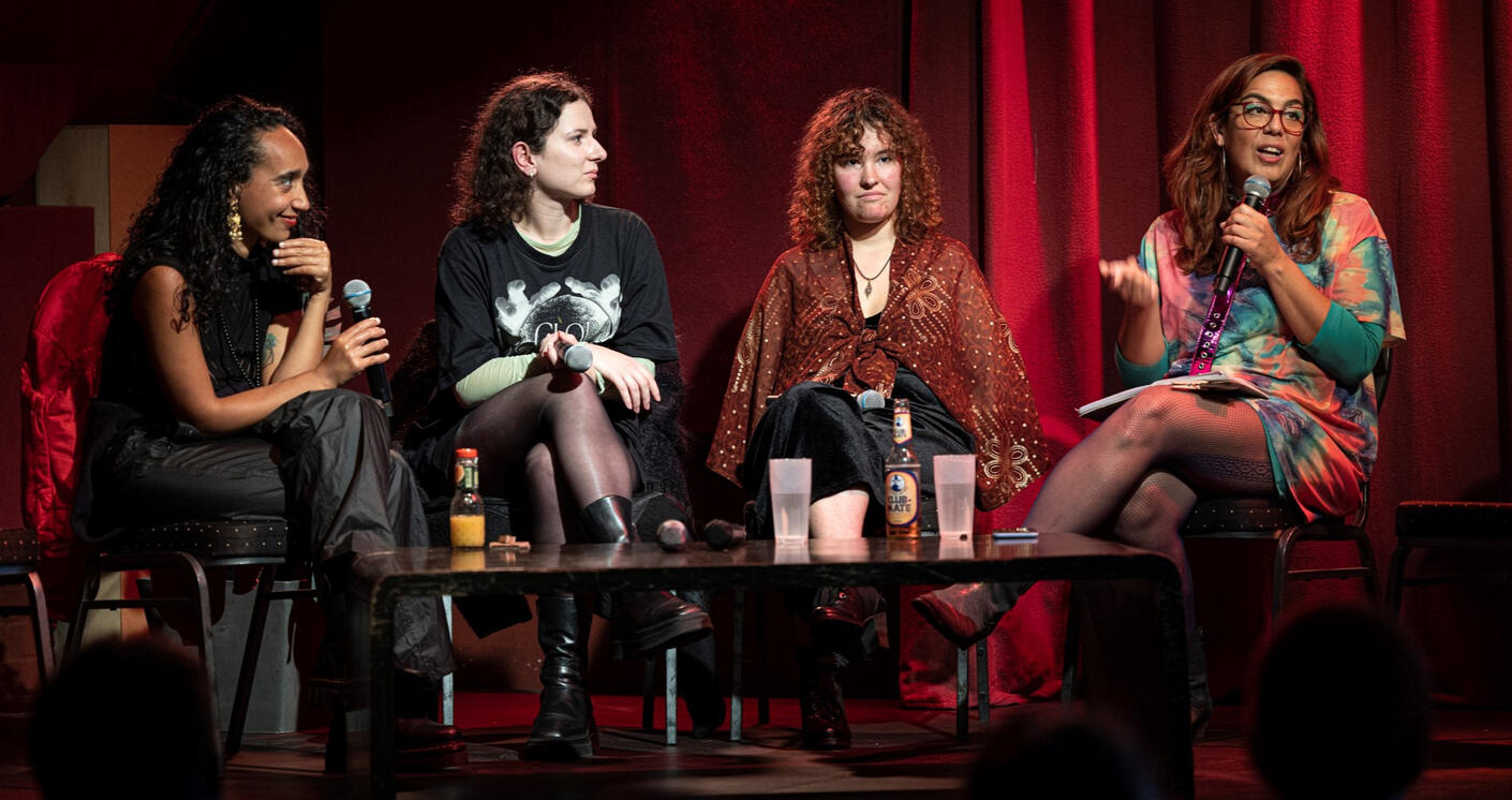 What about FLINTA* in the club and climate scene and what can they learn from each other? That was the topic of a panel discussion in the second half of the evening. Moderated by DJ Alma Linda,DJ Jess2empress, Lilia van Beukering from the mentoring program FemmeBassMafia and Luisa Brühne from BUNDjugend Berlin talked about the challenges of women, lesbians, inter, non-binary, trans and a-gender people in club culture and in the climate movement. The discussants agreed that FLINTA* usually do not get the same attention and respect as male fellow activists or colleagues. To address this, Lilia von Beukering created a special mentoring program to train FLINTA* as DJs for six months. Jess2empress stressed the importance of not exploiting oneself and negotiating good terms when getting assignments.Sustainability, in this sense, was also referred to by the panelists as being self-caring. Everyone agreed that it was exhausting to have to do gender education work in conversations, but that it was equally necessary in order to break through prejudices and establish new narratives.