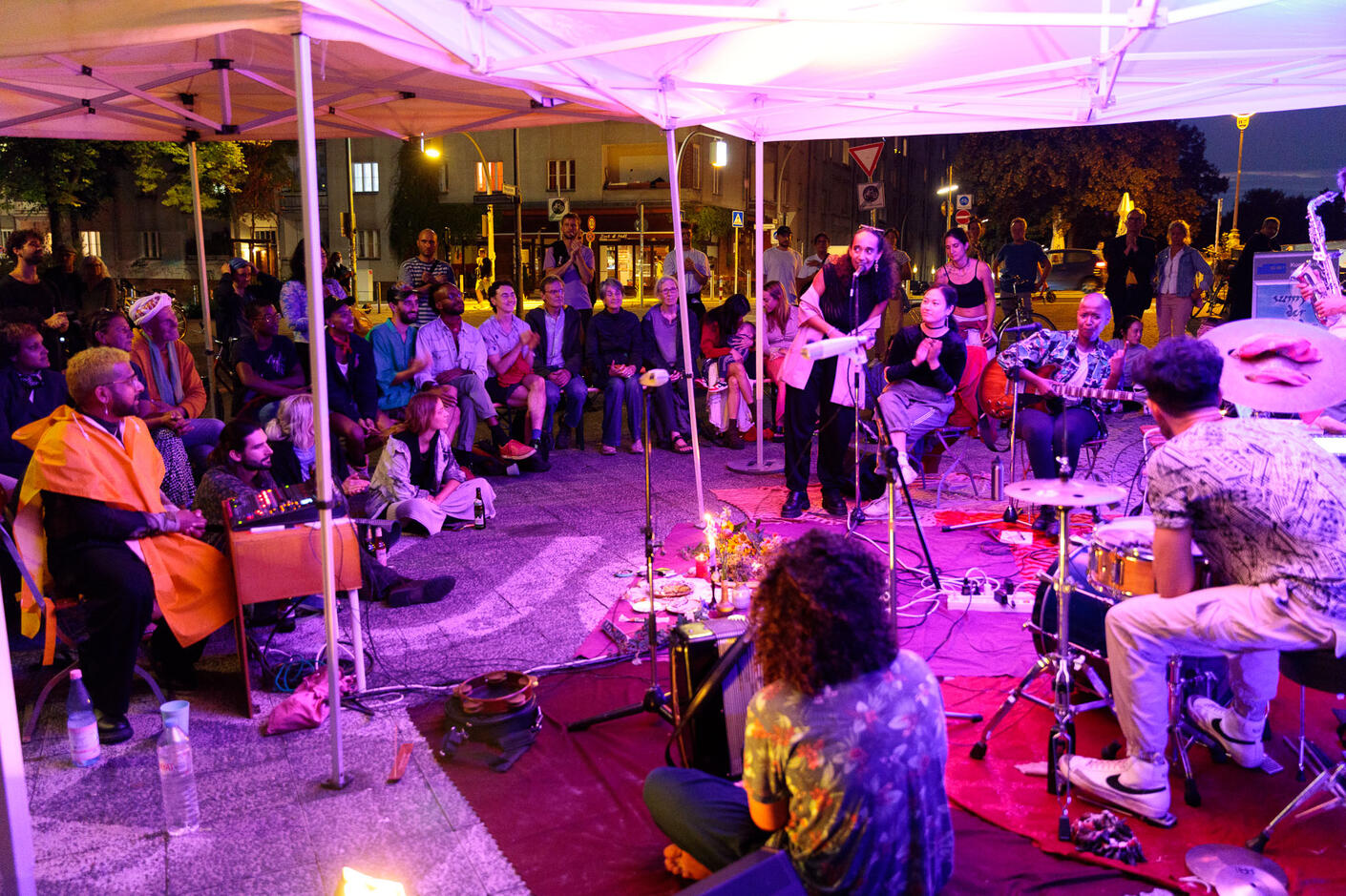 Instant Compositions is an invitation to a two-hour musical expression of QT*BIPoC grief and joy, connectedness through immediate and collective composition. Meditation, electronics and improvisation in the middle of the threshold.For this format, six queer BIPoC artists come together for the first time in a somatic movement workshop led by MINQ. After a one-hour sound improvisation, we invited queer and BIPoC musicians, artists, and performers to join the session with instruments, poems, dance, and sound to participate in the second hour of instant compositionCurator: Jessica Korp